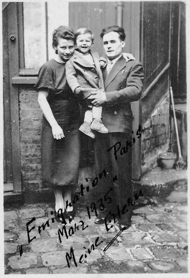 Hugo Salzmann und seine Ehefrau Julianna mit dem 1932 geborenen Sohn Hugo in der Emigration in Paris im März 1935.
