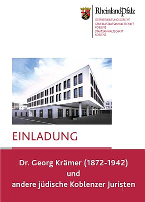 Vor 80 Jahren, am 1. April 1933, fanden die ersten reichsweiten antisemitischen Repressalien gegen jüdische Bürger, vor allem gegen Geschäftsleute, Ärzte und Rechtsanwälte, statt. Aus diesem Anlass zeigt die Justiz in Koblenz ab dem 16. April 2013 im Neuen Justizzentrum Koblenz eine kleine Ausstellung mit dem Thema: "Dr. Georg Krämer (1872 - 1942) und andere jüdische Koblenzer Juristen".